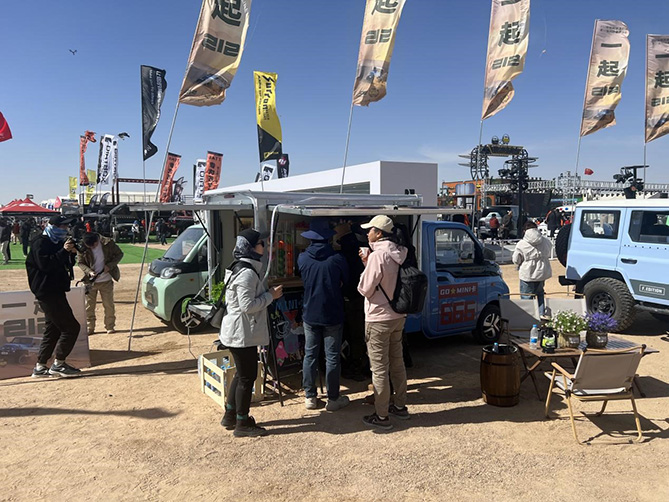 小車的大用處。在阿拉善主會場的核心區域,原本是城配物流工具的北汽雷馳新能源MINI卡在這里展示了自己的“隱藏技能”,只需要簡單改裝,新能源MINI卡就搖身一變,成為了沙漠里的移動咖啡店,為來到這里感受越野文化的人們送上香氣四溢的咖啡,還能作為移動啤酒屋、移動書店、移動美食車、移動便利店等,靈活輕巧,移動方便,非常適合用作低成本創富神器,它的出現,也讓更多的自由職業者看到了一種新生活方式的可能性。