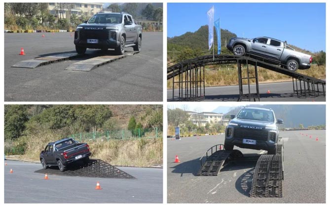 首先,輕松越障 動感十足。道具測試檢驗的是車輛輪胎、動力、底盤、懸架等性能。這對于星際H來說,毫不費力。