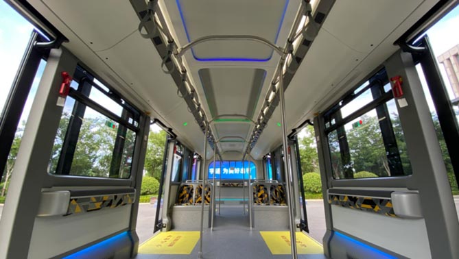 宇通機場擺渡車,采用金剛封閉環全承載車身結構,先進的陰極電泳防腐工藝,確保車輛在高溫干燥露天環境經久耐用;可升降的電控空氣懸架,以及高效、節能、抗菌的大功率、獨立空調系統,在乘坐安全性、舒適性等方面帶來了全面保障。值得一提的是,車輛還可采用塞拉門設計,在安全可靠性、人性化、便捷性等方面均達到國際領先水準,既杜絕了乘客上下車的安全隱患,又展示了宇通客車在技術、質量和服務方面的全新思考與“獨特魅力”。