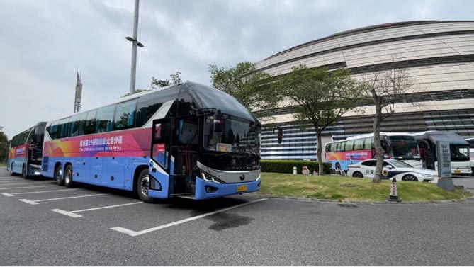 亞運會激戰正酣,宇通T7領銜的宇通高端智能車隊及服務保障團隊時刻嚴陣以待,全力以赴保障場內外各項“賽事”圓滿舉行,為中國智造“添彩”,為民族品牌“提氣”!