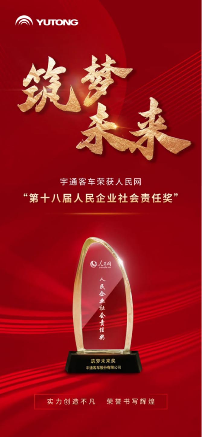 12月21日,由人民日報社指導、人民網主辦的2023人民企業社會責任榮譽盛典暨第18屆人民企業社會責任獎頒獎活動在京舉行。宇通客車憑借著社會責任踐行成果以及在兒童交通安全領域的突出實踐榮膺“第十八屆人民企業社會責任獎——筑夢未來獎”,成為客車領域率先獲此殊榮的企業。