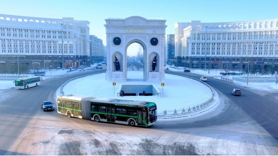 在哈薩克斯坦首都阿斯塔納,宇通E18PRO純電動客車經歷了一場震撼的“極寒大考”。在-25℃的凜冽寒風中,車輛全程開啟供暖系統,車內始終維持18-22℃的舒適溫度,歷經16小時真實運營,搭載超1500人次乘客,最終以374公里的續航里程刷新當地紀錄。這背后是宇通獨有的電池預加熱技術、獨立水暖系統與車身蒙皮透氣孔設計,不僅破解了極寒地區電池衰減難題,更讓“世界第二冷首都”的市民體驗到溫暖舒適的綠色出行。