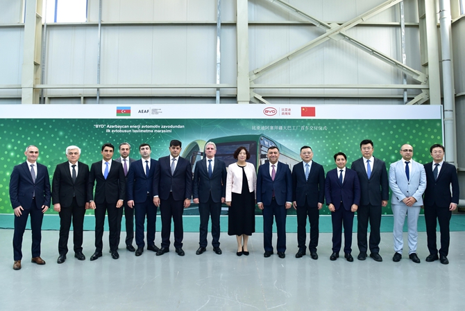 9月24日,比亞迪與阿塞拜疆BAKUBUS在蘇姆蓋特工業園區舉行交付典禮,首批50臺電動大巴正式交付。這是繼去年7月160臺大巴交付后,再次簽署的300臺大巴訂單,也是比亞迪與當地Sarda Group集團、國家發展基金共同投資建設的大巴工廠的首批下線車輛,標志著比亞迪在阿塞拜疆的合作進入新階段。