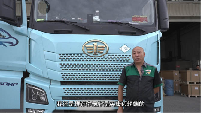 周師傅,今年五十歲,從事運輸行業二十多個年頭,一直是解放品牌的忠實擁躉。“說起來,這輛解放JH6已經是我換的第三輛車了。之前那輛車陪伴我跑了七八十萬公里,經歷了無數的風霜雨雪,見證了我運輸生涯的點點滴滴。現在這輛新車雖然才開了3萬公里,但我對它的表現同樣非常滿意,尤其是搭配了康邁輪端之后,更是讓我省心不少。”