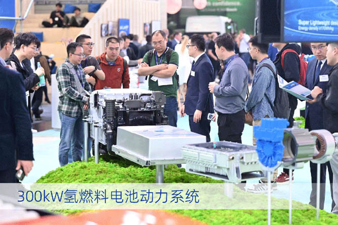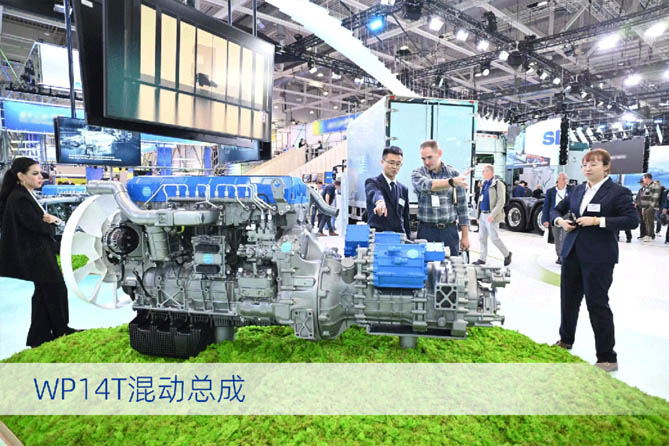 展會現場,濰柴帶來了滿足歐Ⅶ排放標準的53%高熱效率柴油機、WP14T混動總成、WP15靈活燃料內燃機平臺、300kW氫燃料電池動力系統等覆蓋多技術路線的硬核產品,向全世界彰顯了濰柴在傳統動力和新能源動力領域的硬核實力。