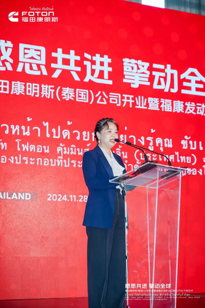北汽福田副總裁馮靜表示:“福田康明斯作為福田汽車旗下動力企業以及全球燈塔工廠,從重卡到輕卡、從客車到專用車,憑借先進的研發技術及智能制造,為福田汽車整車產品提供了強勁動力,為全球客戶提供了豐富多樣的選擇。而泰國工廠的投產,將進一步優化供應鏈體系,提升福康發動機的供應能力和服務水平,為福田汽車在全球市場的競爭中增添新的活力,福康泰國工廠在短短一年之內便高效竣工并順利投產,這一成就是福田汽車與康明斯長達17年深度合作歷程中的一座里程碑。”