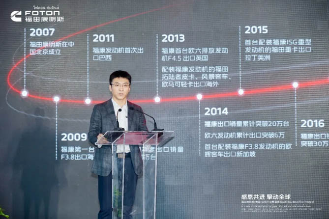 11月28日,福田康明斯(泰國)公司開業暨福康發動機出口第60萬臺下線活動在泰國春武里府隆重舉行。泰國政府海關總署官員、泰國Amata工業園代表,北汽福田、康明斯(中國)投資有限公司以及來自泰國的媒體、亞太康明斯、泰國康明斯等嘉賓、福田康明斯全球供應商合作伙伴們共同見證了這一歷史性時刻。