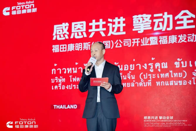 開業典禮上,福田康明斯總經理陳劍表示:“依托雙方領先的整車及發動機技術研發、全面布局的銷售、服務網絡以及北京福田康明斯全球“燈塔工廠”的智造技術,福田康明斯已經為全球100多個國家和地區提供了多元動力解決方案,從裸機出口到助力整車出口,從歐洲、北美到全球市場,從聚焦商用車拓展到非道路應用,福田康明斯持續助力全球用戶取得成功。福康泰國公司將共享北京福田康明斯先進的研發技術、共享全球供應鏈,堅守“零缺陷”質量原則,為全球用戶提供高質量的發動機產品和智慧服務。”