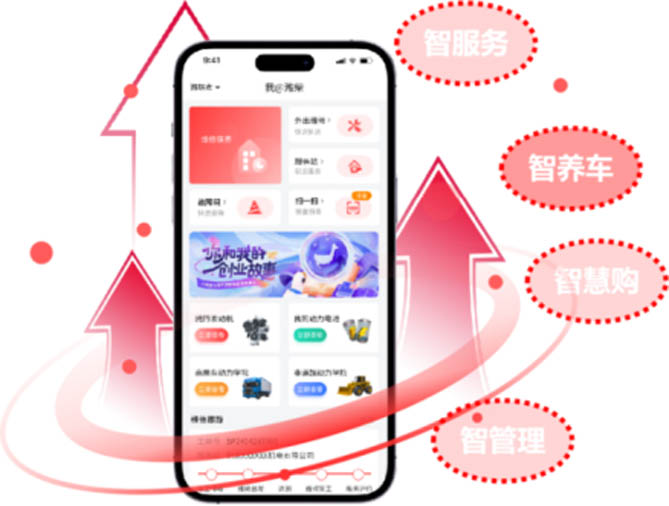 “濰柴同行”APP集銷售與售后服務、交互娛樂等功能于一體,包含智服務、智管理、智養車、智慧購四大管理模塊,具備260多個功能點、1700余個功能項。基于發動機全生命周期,致力于為客戶和渠道提供行業最優、功能最全、性能最好的終端APP,滿足不同發動機使用階段用戶的移動使用需求。同時“濰柴同行”APP支持自助故障報修、故障提醒主動修車等功能,將助力濰柴服務實現由被動向主動轉型。