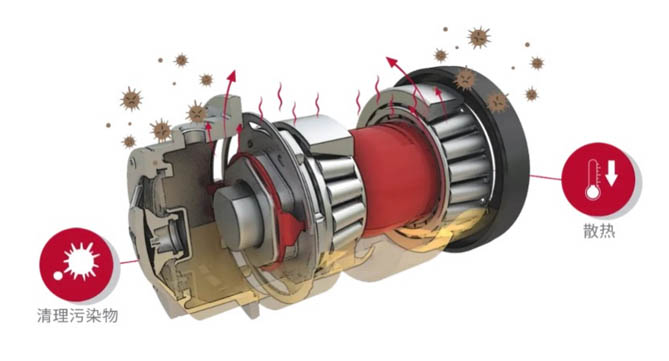 相較于傳統(tǒng)脂潤滑輪端,康邁免維護輪端采用的齒輪油潤滑技術(shù),潤滑油在低溫環(huán)境下運行時,可以快速在滾子、滾道的表面建立油膜,減小軸承的滾動阻力,降低車輛因滾動阻力帶來的多余油耗。同時,還具備散熱的作用,為行車安全提供了更有力的保障。