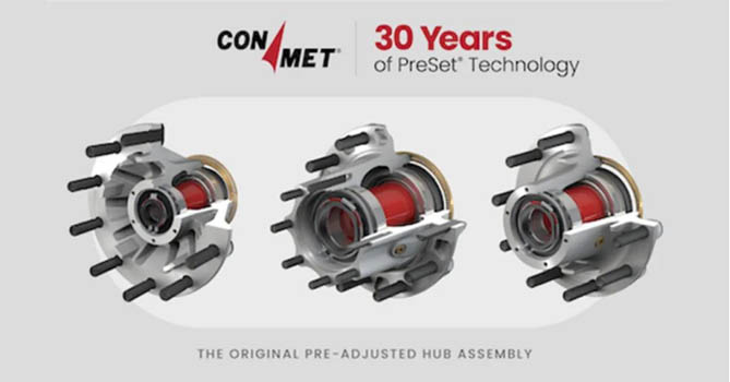 作為康邁推動輪端系統標準升級的重要成果,PreSet?輪端推出后迅速獲得行業認可并成為商用車主機廠首選,為后續技術演進奠定了堅實基礎。2011年,康邁推出PreSet Plus?輪端總成,在原有PreSet?組件基礎上,集成一體式軸頭螺母與優化隔套,進一步提升了整體性能。新設計不僅解決了生命周期后期常見問題,也簡化了安裝與拆卸流程,全面優化用戶體驗。