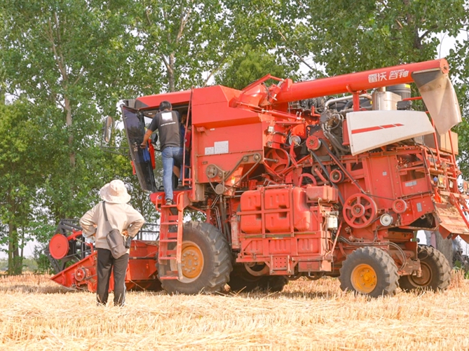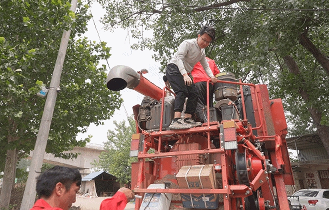 而在南陽市宛城區漢冢鄉孔莊村李王莊大隊的一片麥田里,齊萍正用對講機指揮著駕駛收割機的丈夫開往下一片麥田。齊萍和丈夫是南陽本地人,16年前,夫婦二人借錢購買了一臺收割機,加入了職業麥客的行列,從那時起,他們就成為了濰柴的“鐵粉”。“老家的麥子馬上就要割完了,下一站我們要去周口,河南割完后就去河北、山東,去年我們最遠去了天津。”