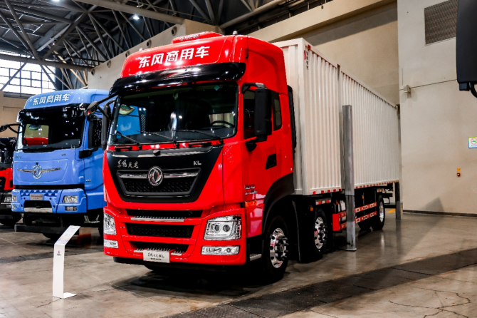 東風商用車在年會現場集中展示了覆蓋重型載貨、干線牽引及燃氣牽引等多種應用場景的車型陣容。天龍 KL、GX、KX等主力系列車型同步配置康邁輪端,為車輛在不同工況條件下的持續運行提供穩定支持。