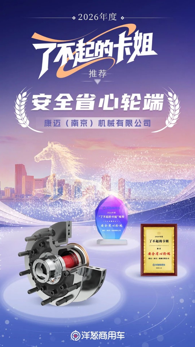 2026年3月8日,在洋蔥商用車主辦的第五屆“了不起的卡姐”活動中,康邁輪端憑借優異表現,獲得“安全省心輪端”獎。該獎項經由卡姐群體自主評選產生,并由全國杰出女性卡車司機共同見證,充分體現了女性從業者對康邁產品實力與品牌信賴的真實認可。