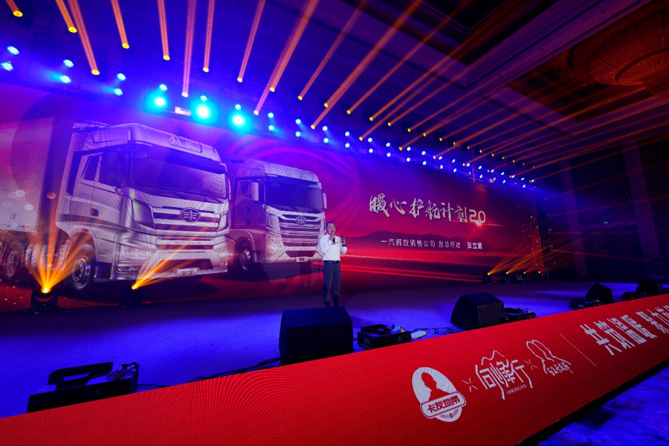 (一汽解放營銷總部副部長,銷售公司副總經理 張立國發布“暖心護航計劃2.0”照片)