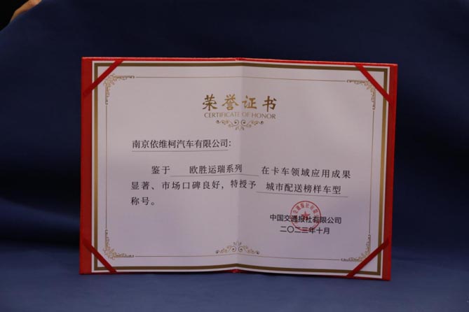 10月20日,由交通運(yùn)輸部主辦,濱州市人民政府、山東省交通運(yùn)輸廳、中國交通報(bào)社共同承辦的2023年“我的公交我的城”重大主題宣傳活動(dòng)濱州站盛大啟動(dòng)。依維柯歐勝運(yùn)瑞系列產(chǎn)品在“第三屆中國交通運(yùn)輸服務(wù)榜樣車型推選”活動(dòng)中,憑借過硬的產(chǎn)品實(shí)力在眾多車型中脫穎而出,榮獲“城市配送榜樣車型”稱號(hào)!