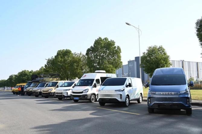 南京依維柯產品應用場景涵蓋物流、客貨兩用、專用改裝、通勤商旅和軍用五大領域,全系列覆蓋傳統能源和新能源產品,是目前用途最廣泛、承載力最強、耐用性最好、可改裝性最優的歐系輕客。在公司室外展車現場,數十輛由依維柯改裝的各類專用車輛悉數亮相,其中依維柯全新得意“聚寶盆”的前臉設計融合了南京城墻故事和傳統文化,讓總編們透過一輛車的設計,了解一座城的傳說。