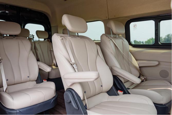 進(jìn)入車內(nèi),內(nèi)飾與空間氛圍更是盡顯尊貴。聚星客車可選5座至9座布局,入懷式豪華座椅包裹性好,坐感柔軟舒適;且座椅采用納米級透氣面料,冬暖夏涼,加上親膚皮質(zhì)扶手,觸感細(xì)膩,讓人如同置身于家中一般輕松愜意;后排座椅配有獨立頭枕、獨立式三點安全帶與座椅靠背調(diào)節(jié)功能與兒童座椅卡扣,對于家庭出行來說不僅能夠緩解旅途勞累,安全性也有所提升;聚星客車還擁有百寶箱般的收納設(shè)計,放置書籍、瓶子、紙巾等日常用品不在話下。