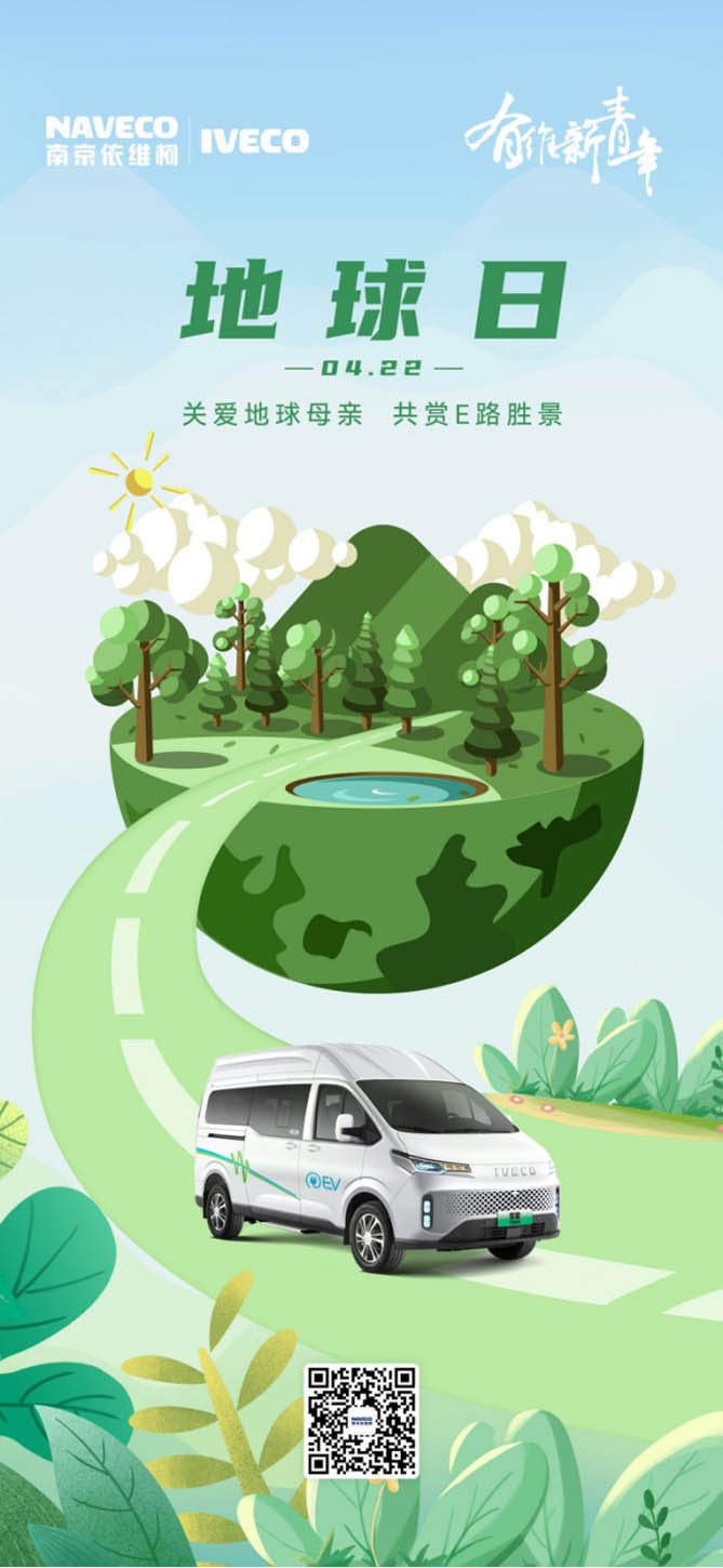 親愛的地球守衛者們!今天,我們迎來了第55個世界地球日——一個提醒人們關愛地球、倡導綠色生活的特殊日子。隨著全球氣候變暖等問題的日益嚴峻,綠色出行已成為全人類共同關注的焦點。作為中國的第一輛輕客,依維柯積極響應全球綠色出行的倡議,在新能源產品的研發和推廣上展現了行業先鋒者的姿態。