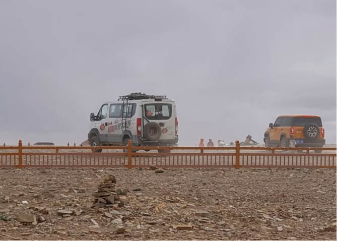 心懷遠(yuǎn)景,必見美景。一路走走停停,依維柯4×4抵達(dá)5000KM紀(jì)念碑,邂逅了充滿浪漫詩意的多情措,與之遙相顧盼的是卓姆拉日雪山,波光粼粼,水天一色,仿佛遺世獨立的仙境,讓人不禁感嘆人間值得。