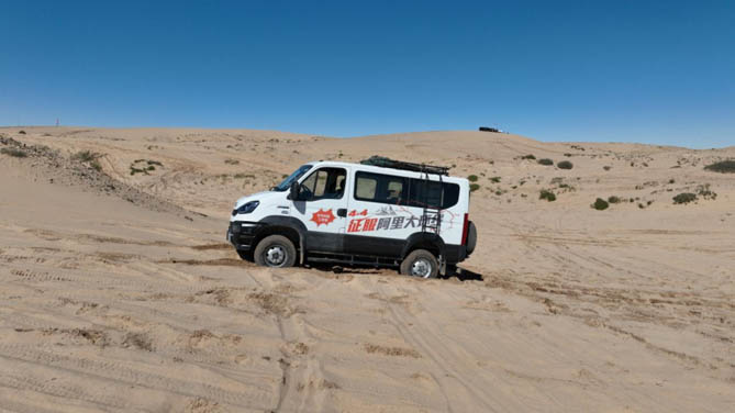 英雄會,會英雄!此次來到戈壁茫茫的巴丹吉林沙漠,依維柯4×4的運動細胞更是被完全激發。面對峰巒陡峭,高低錯落高達百米的沙丘,動力強勁、爬坡能力超60%的依維柯4×4在“鳴沙王國”中攀爬俯沖游刃有余,低滾阻AT花紋無內胎輪胎增強了抓地能力;高扭矩高速比使得加速起步反應敏捷,配合靈活精準的大缸徑轉向器,在駕馭彎道時更從容,讓駕乘者享受腎上腺素飆升的速度與激情。巴丹吉林沙漠還分布著很多色彩斑斕的海子,駕駛車輛在湖泊附近行駛,即使路面濕滑,依維柯4X4“全時四驅+三把鎖”這樣的頂配設計也可以根據路況實時調整動力分配,始終保持穩定的行駛狀態;依維柯4×4還對變速器、燃油系統等關鍵部件進行了防水處理,讓行程更加安心無憂。
