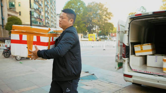 “行啊,今天應(yīng)該輕松點(diǎn),你別說(shuō)十一高峰期是真猛,每天1噸多的螃蟹連續(xù)送7天,得虧我那車貨廂有7個(gè)方了,每天一趟就運(yùn)完了,不然我今天鐵定是扛不住了。”喻師傅回應(yīng)道,手上也忙活不停,麻利地清貨、搬蟹,不一會(huì)的工夫,兩人就合力將螃蟹都裝進(jìn)了車廂。確認(rèn)泡沫箱都擺放得穩(wěn)穩(wěn)當(dāng)當(dāng)之后,喻師傅關(guān)上了后車廂門,連上藍(lán)牙、選好歌曲,哼著歌,迎著燦爛的朝陽(yáng),向各大送貨點(diǎn)駛?cè)ァ?/span>