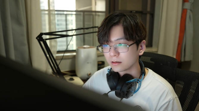 (在新租的小臥室,正在游戲中“奮戰”的劉同學)