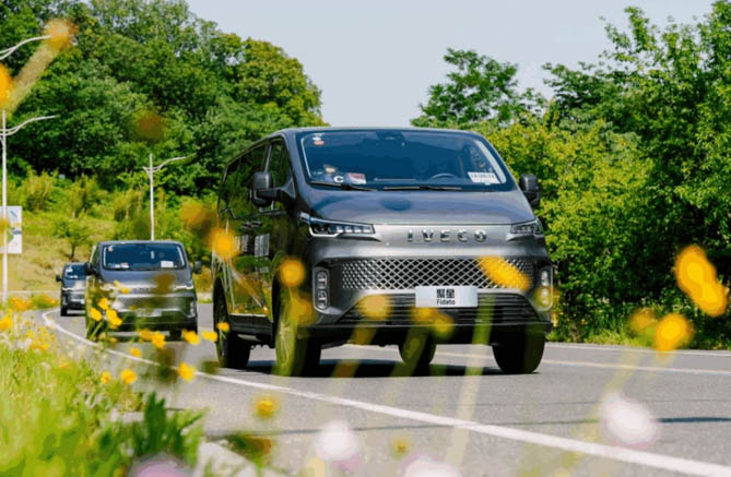依維柯聚星,風刃型面的造型,在陽光的照耀下宛如春日里的一抹流光。穿梭于鄉間小道時,它的身影與搖曳的油菜花田相映成趣;停駐在山野之間時,全景側窗將遠山含翠的景致溫柔框起——隨手一拍即是大片;細雨朦朧中,水滴沿著車身曲線滑落,仿佛大自然在為這件移動藝術品題寫晶瑩的詩行。