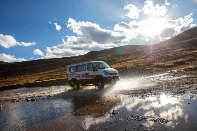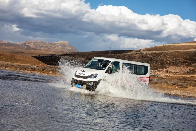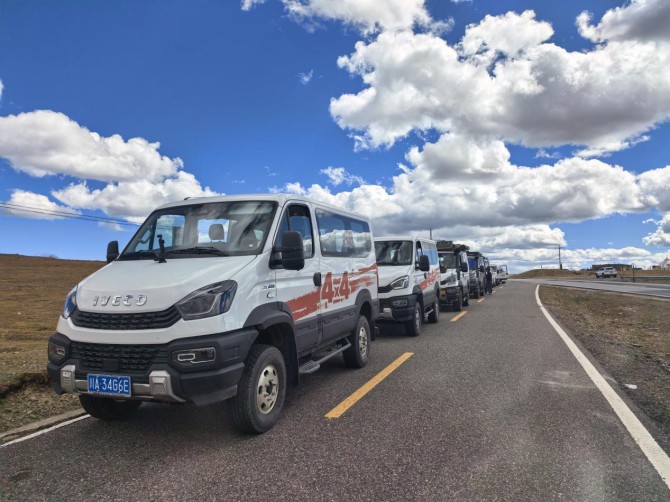 在《康定情歌》的悠揚(yáng)旋律中,六輛依維柯歐霸·山海越野車(chē)如鋼鐵雄獅般列隊(duì)啟程。車(chē)隊(duì)自新都橋鎮(zhèn)啟程,經(jīng)天路十八彎、鐵匠山、納海、則巴村,全程總計(jì)約400公里,涵蓋柏油路面、連續(xù)下坡山路S彎道、涉水路段等復(fù)雜路況,依維柯歐霸·山海亦將以全方位的卓越性能,全程展現(xiàn)專(zhuān)業(yè)越野的硬派實(shí)力。
