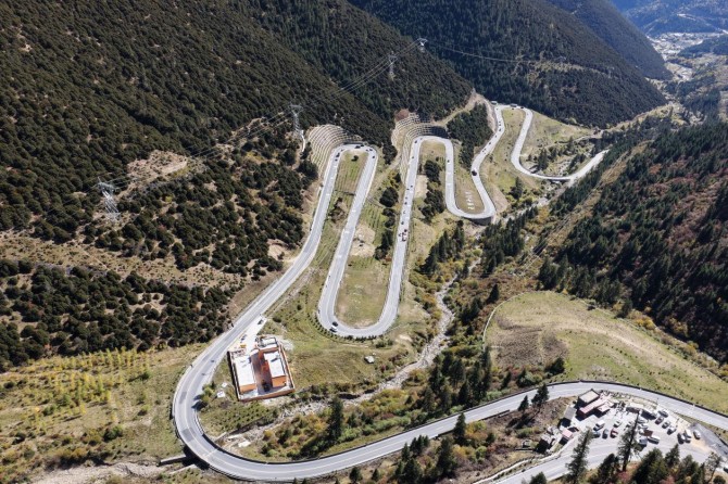天路十八彎是318國(guó)道川藏線(xiàn)雅江至理塘段的標(biāo)志性路段,以海拔4659米的剪子灣山為地理坐標(biāo),川藏公路在此形成12公里連續(xù)盤(pán)山路,最大坡度7%,最小轉(zhuǎn)彎半徑15米,對(duì)車(chē)輛動(dòng)力分配與操控穩(wěn)定性提出極致考驗(yàn)。