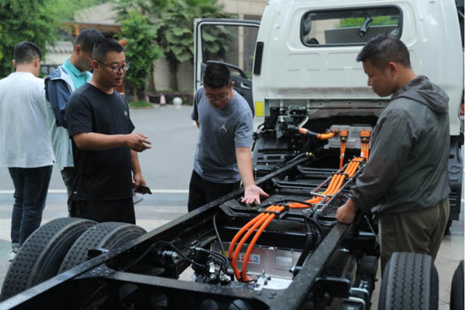 作為純電輕卡,帥鈴EV5采用高效率、高承載的集成電驅(qū)橋,后橋傳動效率最高可達(dá)97.98%;1620mm寬輪距后橋,同級別最寬,行駛更穩(wěn)定;4T大截面橋殼+6孔胎,承載能力提升13%。