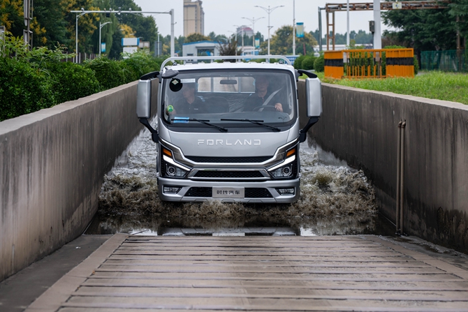 該機型搭載由時代主導、聯(lián)合全柴與菱電開發(fā)的F28T渦輪增壓發(fā)動機,排量2.723L卻輸出190Ps最大馬力與460N·m峰值扭矩,低速扭矩較同平臺提升84.7%,空載最高車速≥130km/h,載重5T時仍能保持超110km/h的高速性能。
