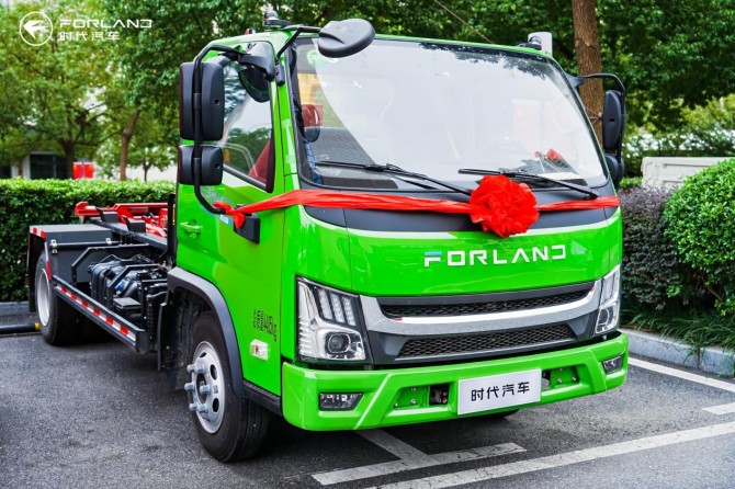 憑借拉臂鉤設計,該車可實現“一車配多箱”的高效循環作業。在建材運輸場景中,它可以將滿載的料箱A放下即走,再去拉運料箱B;在垃圾清運場景中同理。加之其滿油滿電最高可達500公里的續航,完美契合了城市點對點、高頻次的轉運需求。