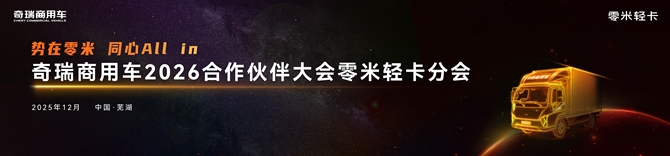 12月24日,奇瑞商用車2026年合作伙伴大會,零米輕卡金米版上市發布,敬請期待!