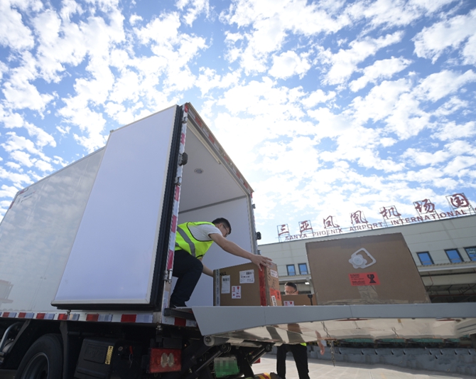 封關(guān)首日上午,作為自貿(mào)港通關(guān)口岸之一,三亞鳳凰國際機(jī)場(chǎng)迎來第一批“零關(guān)稅”進(jìn)口貨物。在三亞鳳凰機(jī)場(chǎng)國際貨站,第一批“零關(guān)稅”商品順利完成清關(guān)出庫,這些貨物中,一票是北京大學(xué)口腔醫(yī)院三亞醫(yī)院自德國進(jìn)口的貨值98.8萬元的能譜儀和電子背散射衍射儀;另一票是國藥器械(海南)有限公司自香港進(jìn)口的貨值97.65萬元的2臺(tái)科研設(shè)備。在緊張的貨主核驗(yàn)和裝車后,載著進(jìn)口醫(yī)療設(shè)備的歐馬可智藍(lán)ES1·100度冷藏車在眾多媒體鏡頭的注視下平穩(wěn)、高效地駛出,護(hù)航首批“零關(guān)稅”進(jìn)口貨物清關(guān)任務(wù)。
