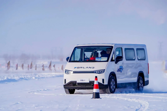 在連續(xù)、變速的制動(dòng)、環(huán)路測試中,祥菱U7動(dòng)力輸出平穩(wěn),啟停精準(zhǔn),轉(zhuǎn)向輕盈。事實(shí)上,這樣的卓越表現(xiàn)得益于其“U質(zhì)”的動(dòng)力系統(tǒng)。首先補(bǔ)能方面可圈可點(diǎn),其搭載的寧德時(shí)代電池在日常運(yùn)營環(huán)境下通過2C超快充僅16分鐘充電即可達(dá)到30%-80%的蓄能,此次在極寒條件下充電效率依然在線。其次,整車的液冷液熱系統(tǒng)可以保持-35℃至65℃的超寬工作溫域,確保電池在極端低溫下活性穩(wěn)定,無疑為城配物流用戶的冬季出勤率帶來極大保障。實(shí)測中,匹配福田自研電池系統(tǒng)的祥菱U7,在低溫環(huán)境下表現(xiàn)功率依舊出色,同時(shí)具備更“U越”的六合一動(dòng)力總成優(yōu)勢,以及EHB能量回收功能和超低風(fēng)阻系數(shù),進(jìn)而保持了超低能耗,這些技術(shù)及配置是其參與冰雪綜合性能測試的底氣。