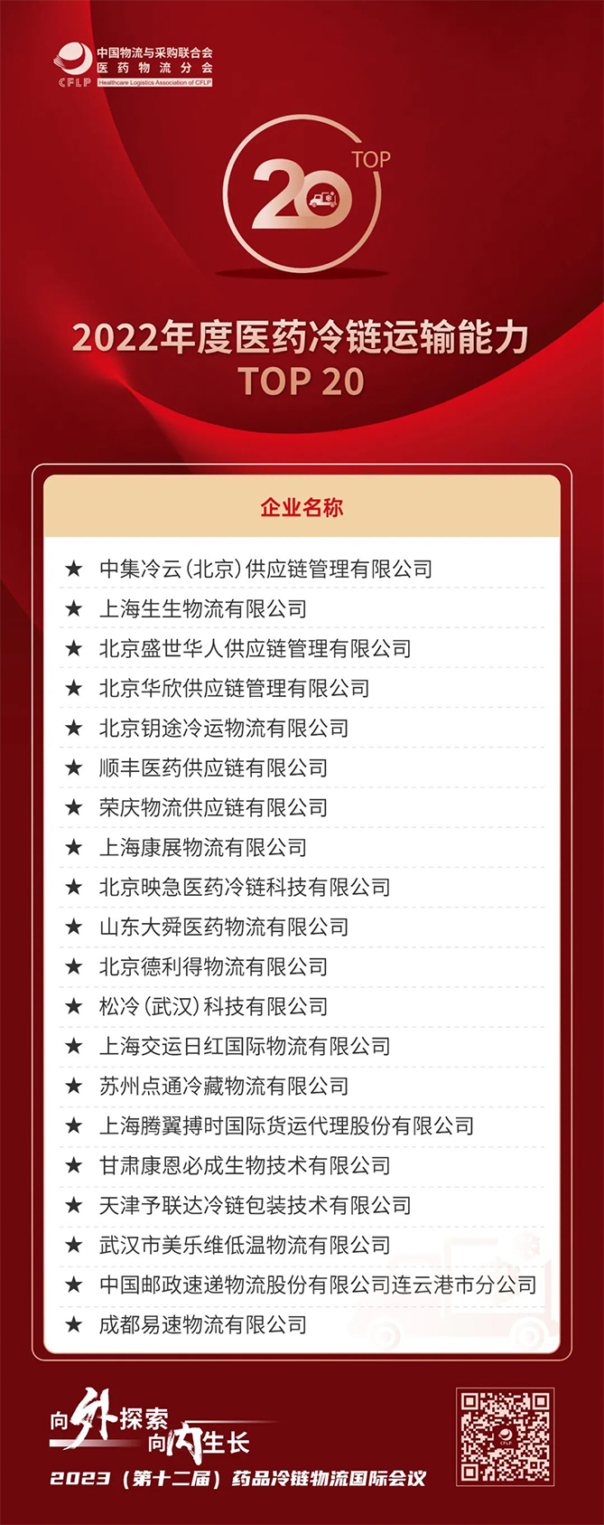 榜單公布!2022年度醫藥冷鏈運輸能力TOP20