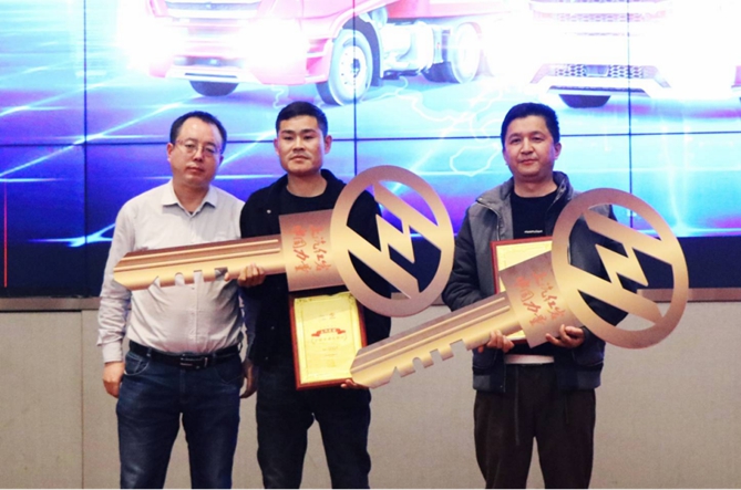 活動(dòng)現(xiàn)場(chǎng),上汽紅巖營(yíng)銷(xiāo)公司牽引車(chē)事業(yè)部總經(jīng)理鄭宇龍將象征財(cái)富的“金鑰匙”遞交到安徽福車(chē)總經(jīng)理手中,本次批量交車(chē)為雙方的合作開(kāi)啟了新篇章。安徽福車(chē)總經(jīng)理也作為上汽紅巖“公路英雄先鋒官”代表上臺(tái)接受了授牌,他在致辭中表達(dá)了對(duì)上汽紅巖品牌的信賴(lài):“我們用過(guò)不少品牌的重卡,但能和司機(jī)師傅們一起吃、一起送貨、一起共創(chuàng)產(chǎn)品的品牌不多,運(yùn)輸行業(yè)需要像紅巖這樣的重視用戶(hù)聲音、重視用戶(hù)體驗(yàn)、重視研發(fā)創(chuàng)新的企業(yè),我相信買(mǎi)紅巖就是能賺錢(qián)、更放心,也期待以后與紅巖有更多的合作!”