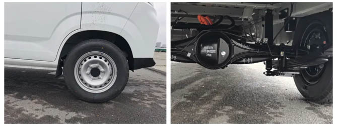 承載方面,開瑞江豚E7采用的195/70 R15 LT輪胎,輪胎層級達到12PR,承載力相當于輕卡級別。底盤采用6片加厚板簧,前文提到能裝載1375公斤,顯然這樣的底盤更讓司機們心里感到踏實。