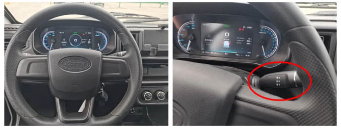 懷擋,顧名思義就是在司機懷抱里就能掛擋。開瑞江豚E7將R/N/D擋操作設計到了方向盤右側,如操作燈光一樣方便。司機只要輕輕拔動擋拉把手,就能開動車輛。
