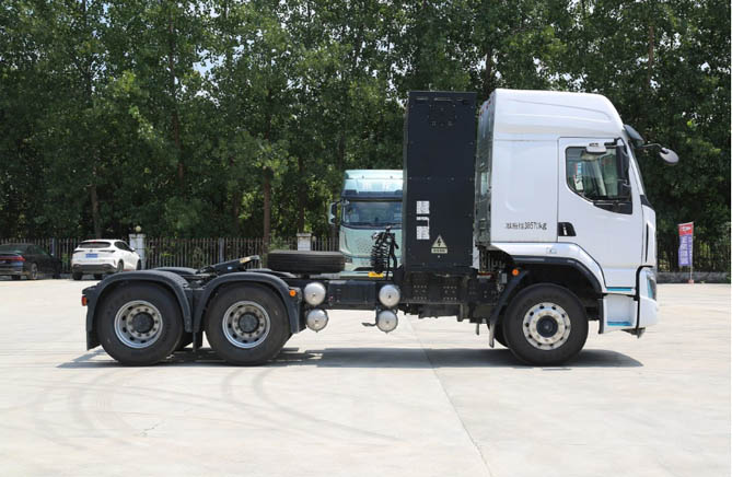 不僅如此,為了同步提高運效,乘龍H5 400度充換一體牽引通過35項輕量化技術,使整車自重輕至9.7噸,自重相比市場同類產品輕400kg以上。而充換電一體設計使其更能在5分鐘內完成換電操作,真正實現了輕量快跑,為卡友爭取更多的運輸時間和收益。