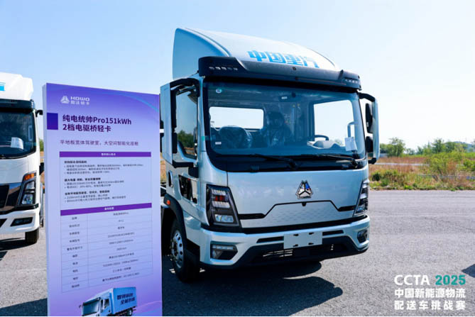 面對復雜路況與多重挑戰,中國重汽新能源輕卡以“性能無界”姿態強勢領跑。專為高頻城配打造的HOWO統帥T系列,以“省”服人!該車型全方位適配城市頻繁啟停工況,以“全維度降本”震撼全場,平均下來每10萬公里同比燃油車省7萬元運營成本!其電池、電機、電控系統,防護等級均達到IP68標準,通過“高溫、高寒、高原” 極限環境驗證,整車在極端條件下仍能保證性能穩定及續航里程。HOWO純電統帥T系列輕卡在賽場上的“絲滑”表現,讓現場觀眾紛紛豎起大拇指:“開這樣的車,才敢放心跑全國!”。