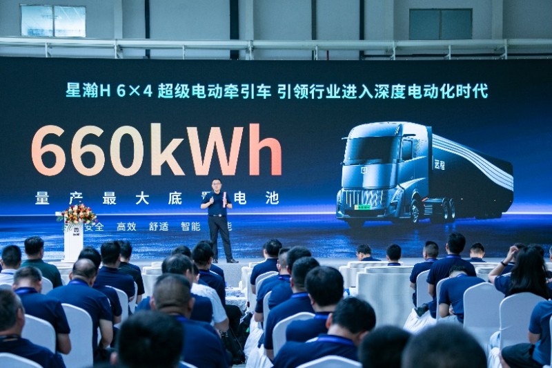 電動重卡領域,遠程星瀚家族旗下超級電動牽引車是行業首款底置換電車型,可覆蓋440-660kWh電池,作為市場上最可靠的底置電池+電驅橋產品,歷經4年20多個場景驗證,依托騏驥換電網絡和自研大功率快充技術,可實現極速補能,換電僅需5分鐘。
