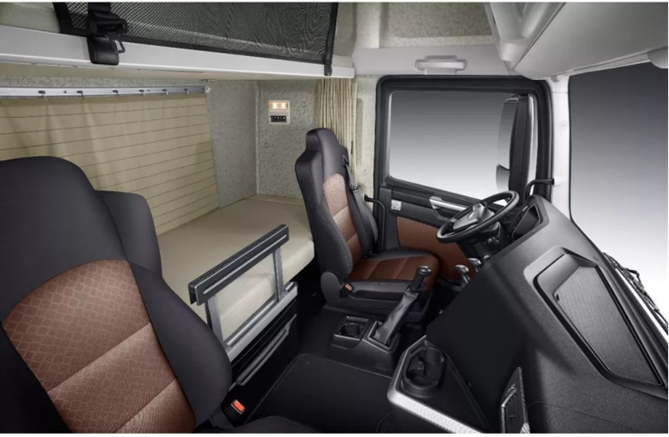 一天中,卡友多數時間都在車上度過,環境與舒適度會極大影響他們的生活質量。J7內部空間2.15米,平地板設計,視野開闊,行動便利;主駕駛空氣減震座椅,帶扶手,高低、俯仰、座深皆可調,可帶通風加熱;采用上下雙層臥鋪,均有防跌落安全保護,從細節入手,給卡友長久的溫暖舒心。