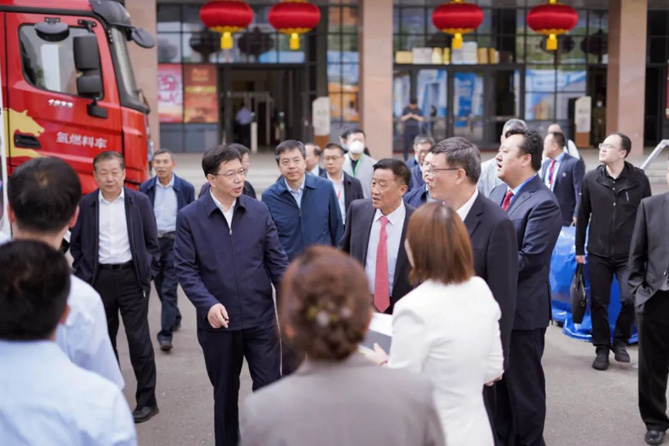 大會開幕儀式前,內蒙古自治區副主席、政府黨組成員楊進,內蒙古自治區政協副主席、自治區工商聯主席安潤生與眾領導嘉賓,共同蒞臨北奔重卡展位參觀,聽取工作人員介紹北奔重汽基本情況及氫能源系列產品,在聽取介紹后參觀領導對于北奔一直以來積極踐行國家“雙碳”戰略,推動自治區綠色轉型發展給予了充分肯定。