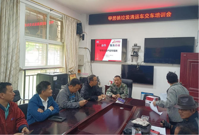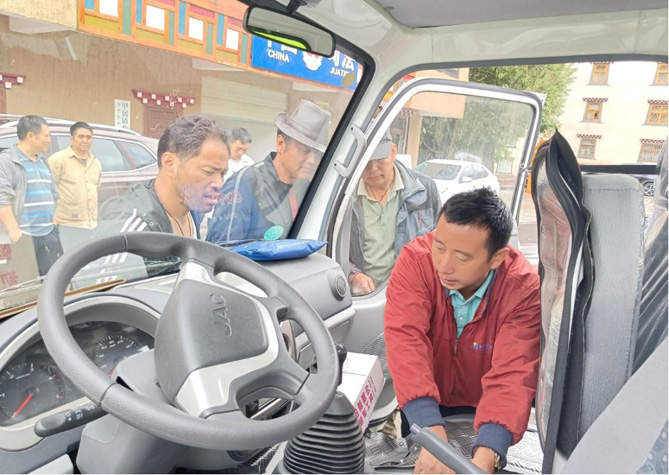 在甲居鎮,服務人員一一走訪了當地的用車單位,經過多番了解,得知藏族同胞們對于這批江淮1卡國六環衛車均存在使用不夠了解,保養維護不清晰的情況。后續,江淮1卡服務人員在巴丹縣近20個鄉鎮走訪,了解使用情況,得到的結果與甲居鎮是相似的。據此,江淮1卡服務人員決定開展一場國六專項的技能培訓工作,指導當地駕駛員熟練操作這批車型,以及如何開展日常養護,并進行難點疑點解釋。