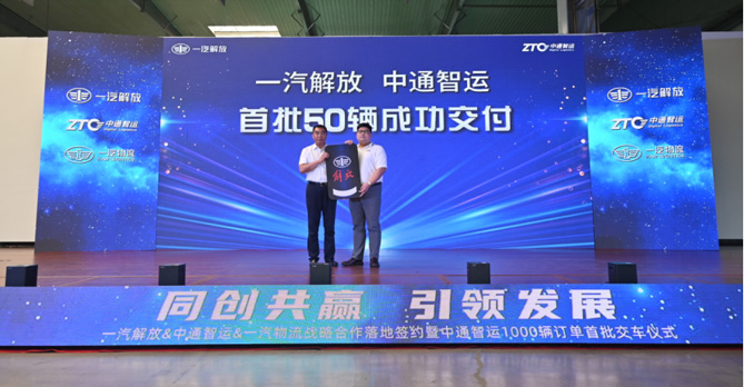 一汽解放營銷總部部長張松向中通智運交付首批訂單車輛