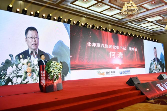 高會山在致辭中表示,高山汽修救援與北奔重汽、雙星集團、聚能重工集團、河鋼集團、京東等國有、民營大型企業(yè)以及社會大型物流企業(yè)福佑卡車等實現(xiàn)了深度合作。更多社會名流、行業(yè)大咖成為高山汽修救援志同道合的合伙人,有力地促進了高山汽修救援事業(yè)的高質(zhì)量發(fā)展。北奔重汽黨委書記、董事長何清贊美高山汽修救援為“民之英豪”,高山人深受鼓舞。作為有著“紅色基因”的國之重器北奔重汽,與高山汽修救援相互賦能,充分發(fā)揮各自優(yōu)勢,積極探索新的合作模式,建立起全方位的合作關(guān)系。高山汽修救援審時度勢,精心謀劃,超前布局,把控汽修救援行業(yè)數(shù)字化發(fā)展現(xiàn)狀和趨勢對經(jīng)濟社會發(fā)展的影響,認(rèn)真落實國家大數(shù)據(jù)戰(zhàn)略,以前瞻性的視野和創(chuàng)新的理念,積極建設(shè)數(shù)字化智慧救援平臺,為中國汽修行業(yè)樹立新的標(biāo)桿,也為全國的商用車司機朋友帶來了更加便捷、安全的服務(wù)體驗。