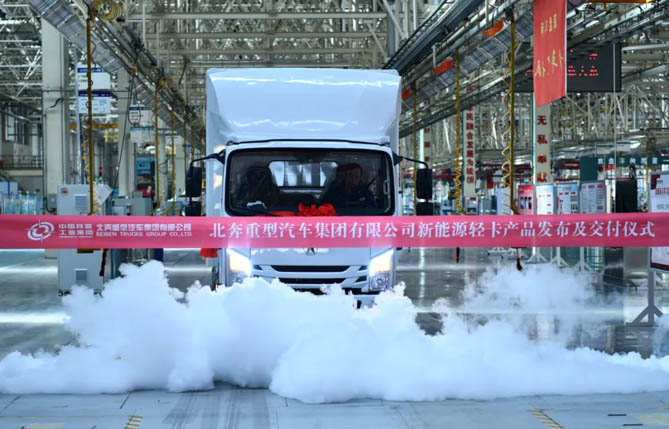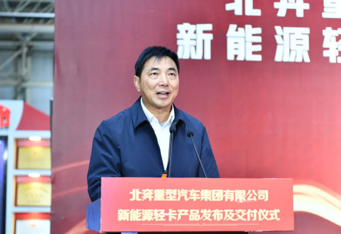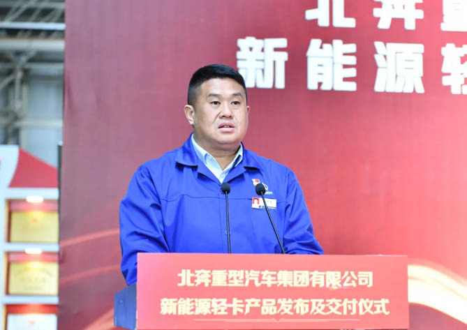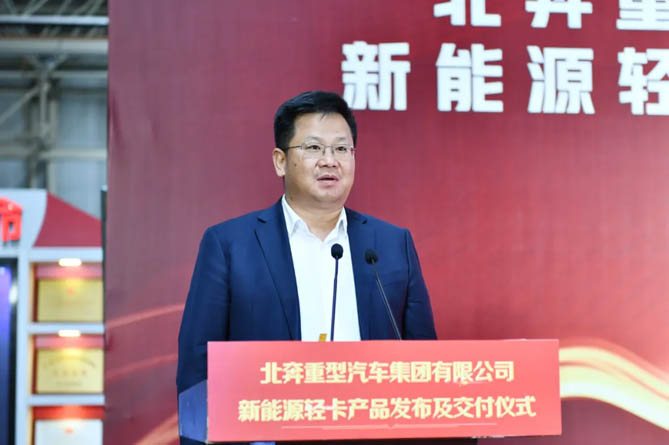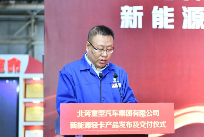 劉海泉宣布了北奔重汽首批新能源輕卡發(fā)車。