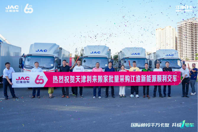 活動現場,天津利來搬家公司批量采購五輛江淮1卡新能源輕卡